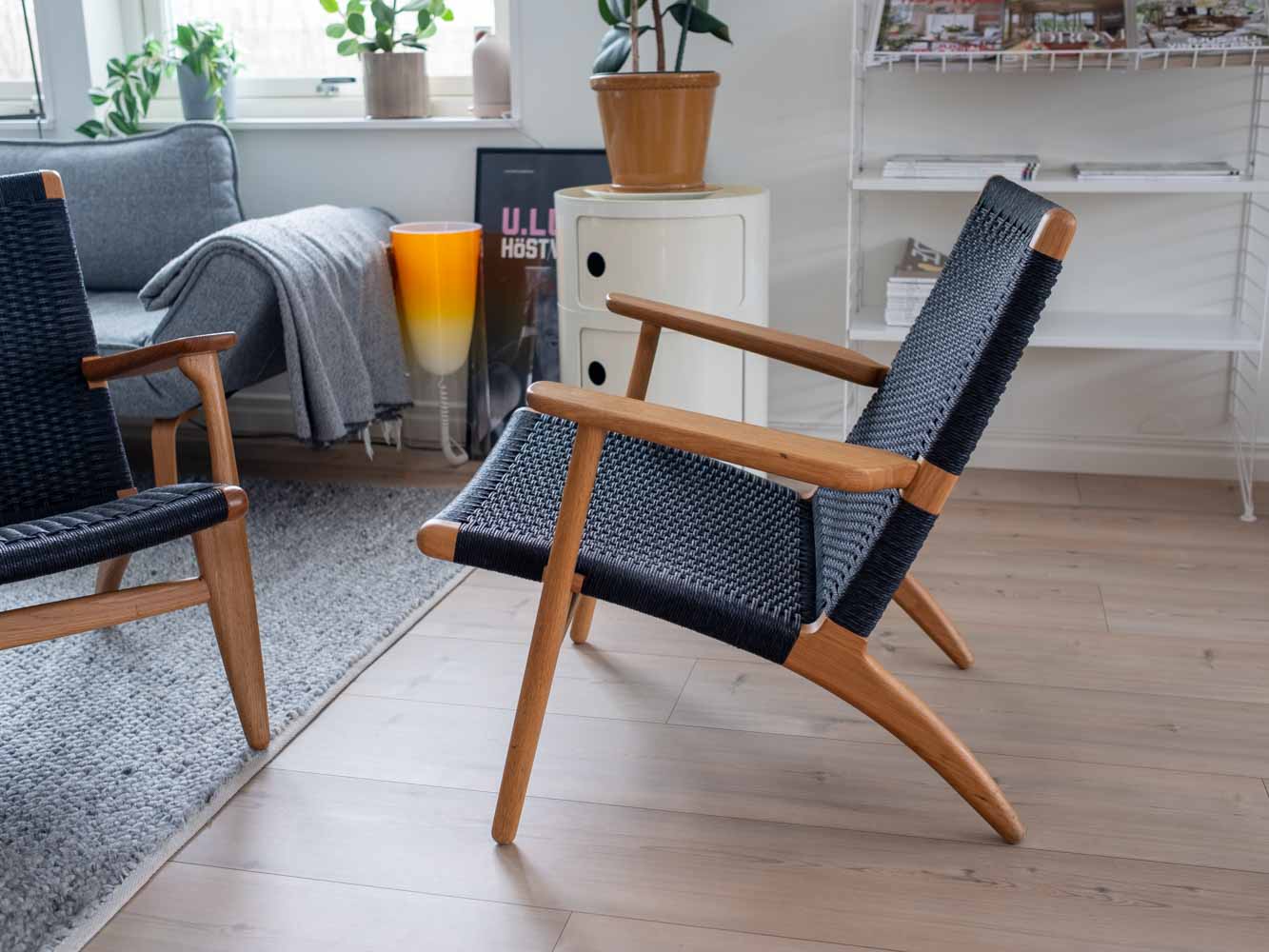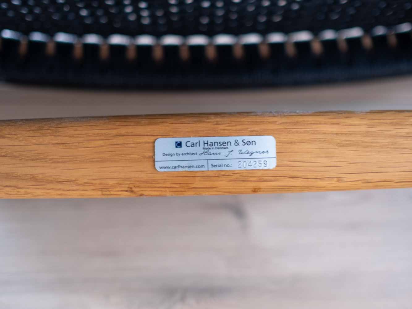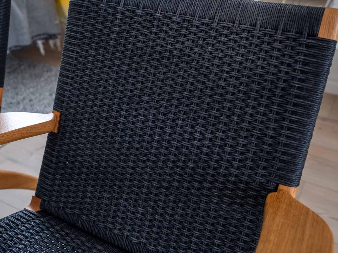 År 1949 inledde Hans J. Wegner och Carl Hansen & Søn sitt flera decennier långa samarbete. Året därpå lanserades den idag välkända fåtöljen CH25 tillsammans med en av den danska designens största ikoner – CH24 Y-stolen. Det var också här som Wegner fick mycket uppmärksamhet för sitt materialval för den flätade sitsen. Stomme i ek. Svartflätat papperssnöre. Avdragsgill moms för den som har företag. Pris avser styck ink moms