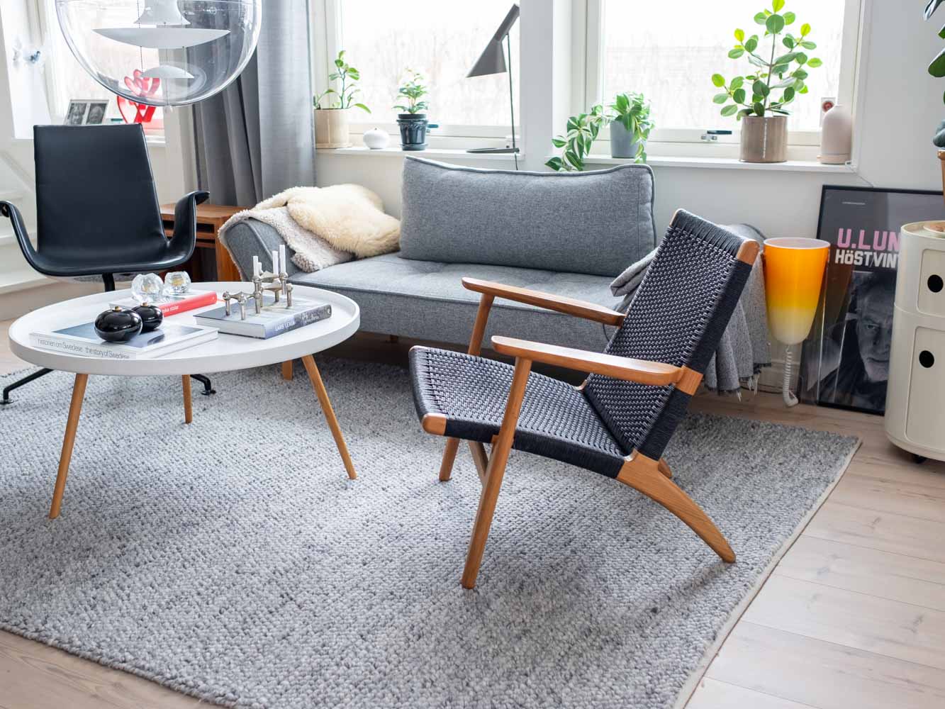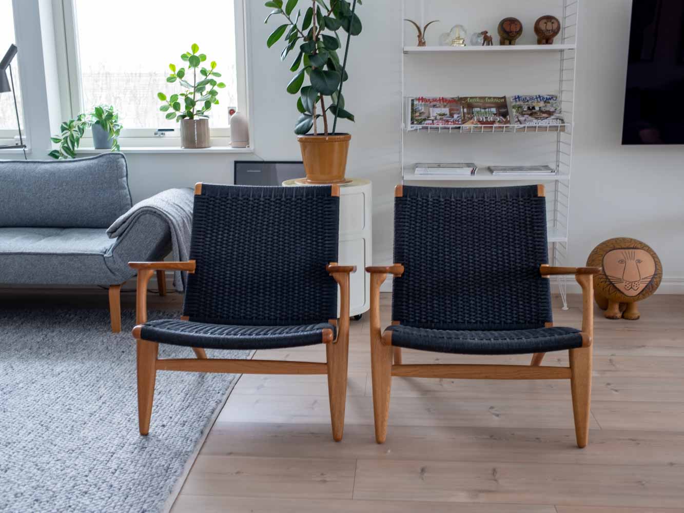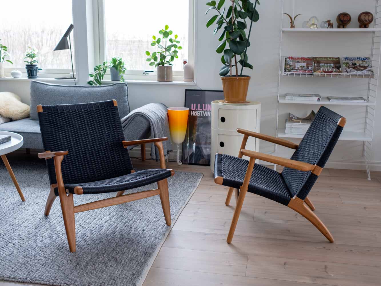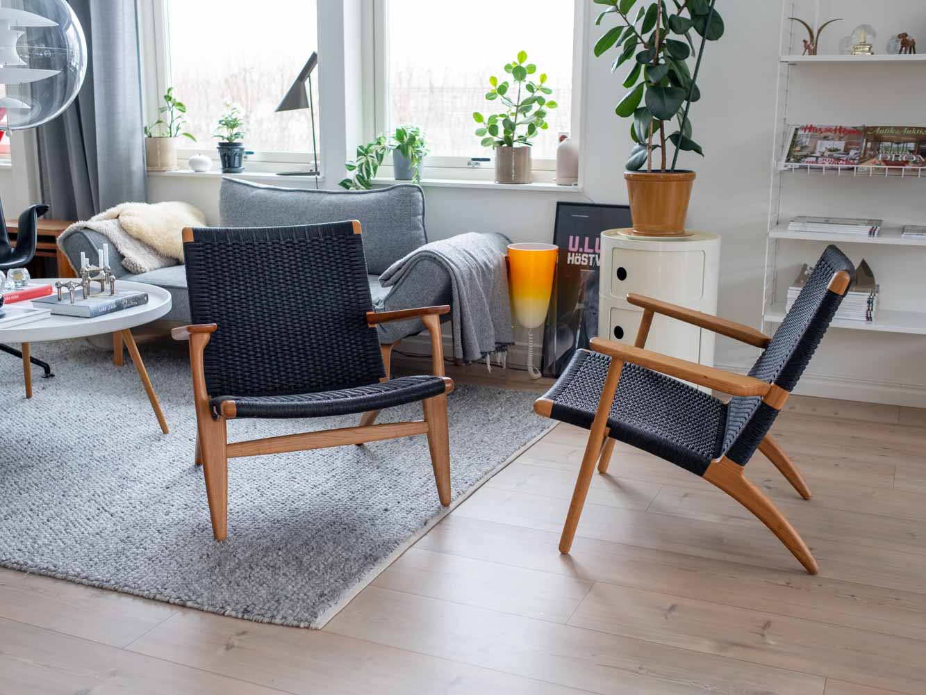År 1949 inledde Hans J. Wegner och Carl Hansen & Søn sitt flera decennier långa samarbete. Året därpå lanserades den idag välkända fåtöljen CH25 tillsammans med en av den danska designens största ikoner – CH24 Y-stolen. Det var också här som Wegner fick mycket uppmärksamhet för sitt materialval för den flätade sitsen. Stomme i ek. Svartflätat papperssnöre. Avdragsgill moms för den som har företag. Pris avser styck ink moms