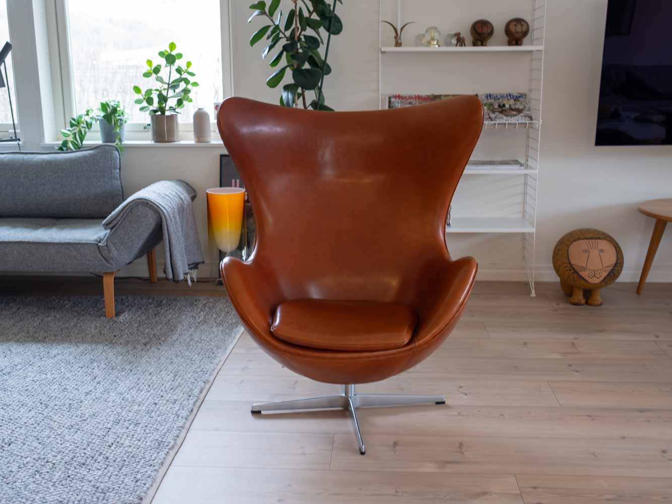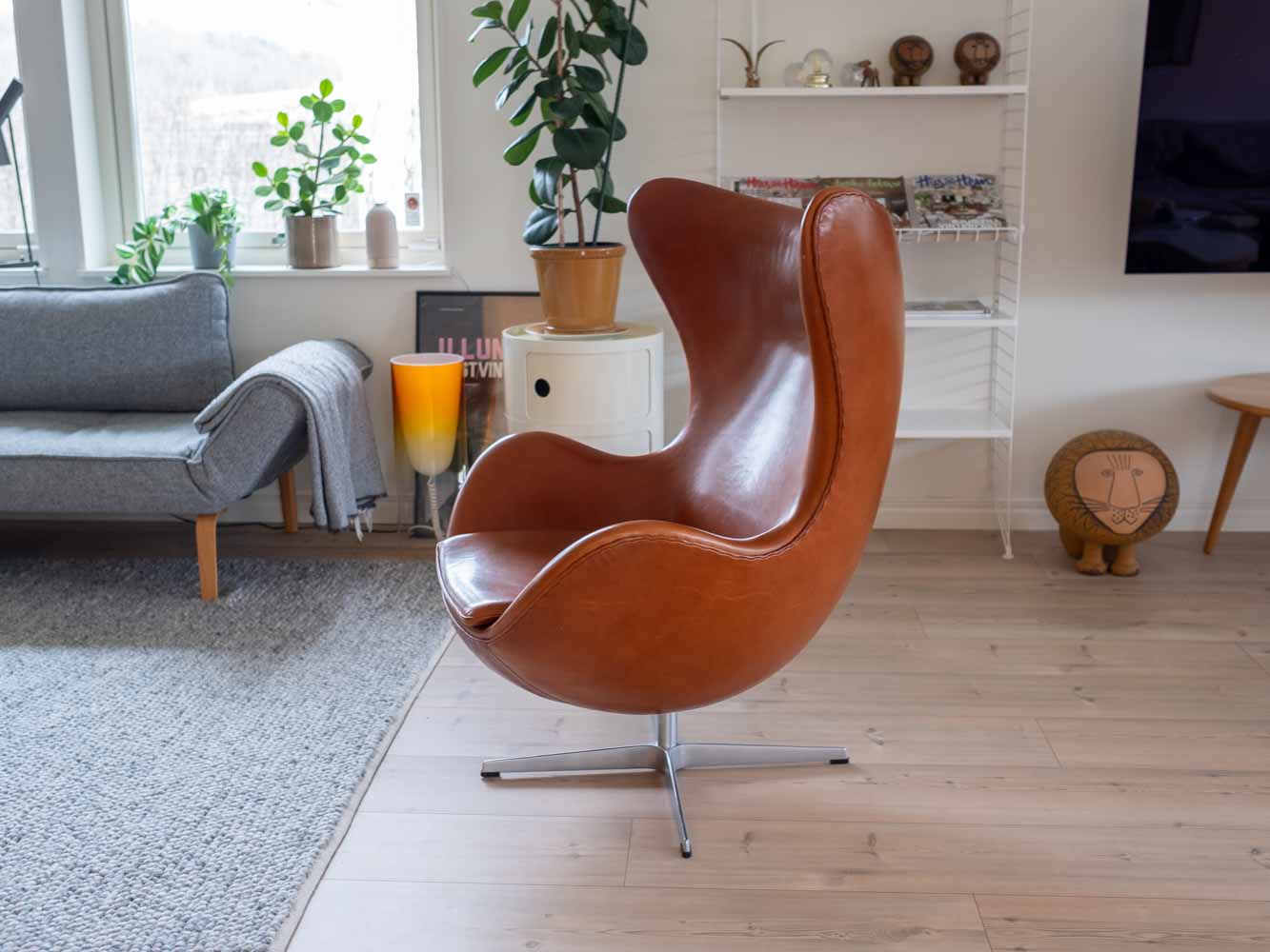 Fåtöljens skal är gjort av polyuretan med glasfiberförstärkning, vilket ger en robust och hållbar struktur. Det är täckt med kallskum för extra komfort. Du kan välja mellan en massa olika färger och klä den i antingen tyg eller läder, så att den passar perfekt in i ditt hem. Basen är roterande och gjord av satinpolerat stål, och den vilar på en fot i formpressat aluminium. En smart inbyggd vippmekanism av stål gör att du enkelt kan justera fåtöljen efter din kroppsvikt. För att få den ultimata komforten rekommenderar vi verkligen att du kompletterar ”Ägget” med den matchande fotpallen.