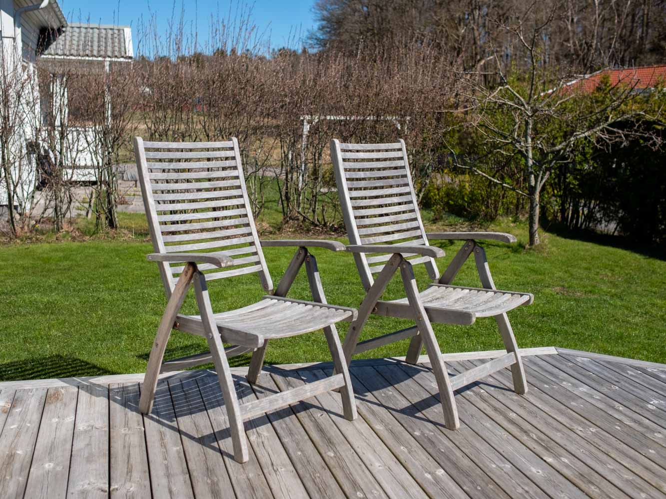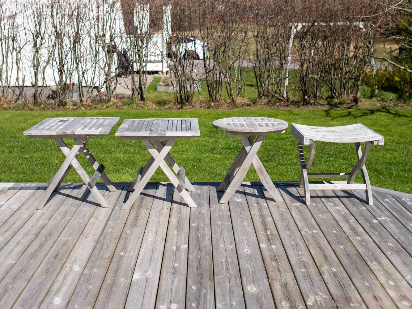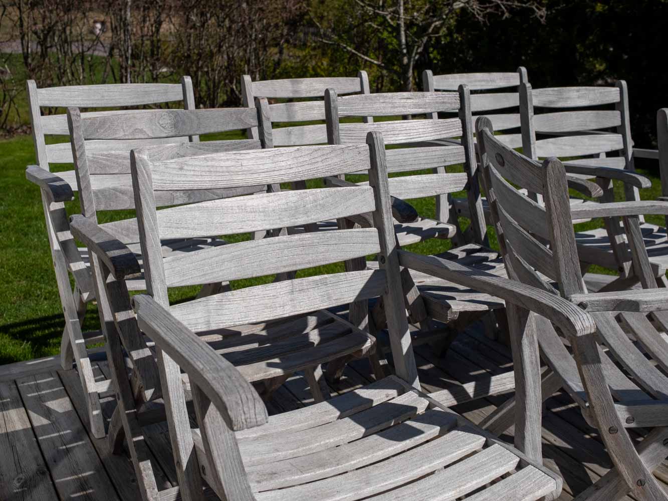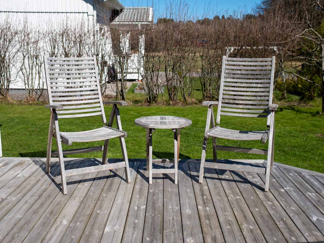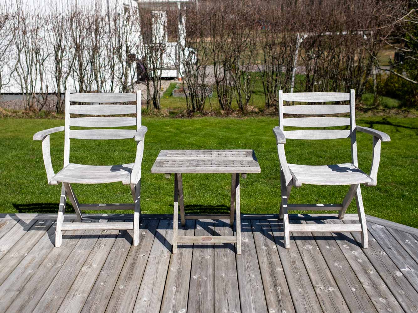 Utemöbler i teak från Brafab. Positionsstolar, karmstolar, loungebord. Finns en hel del av varje sort.
